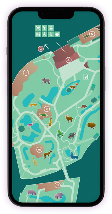 Download our visitor app from the information screen at the entrance and receive all the latest news about your visit to the zoo:
